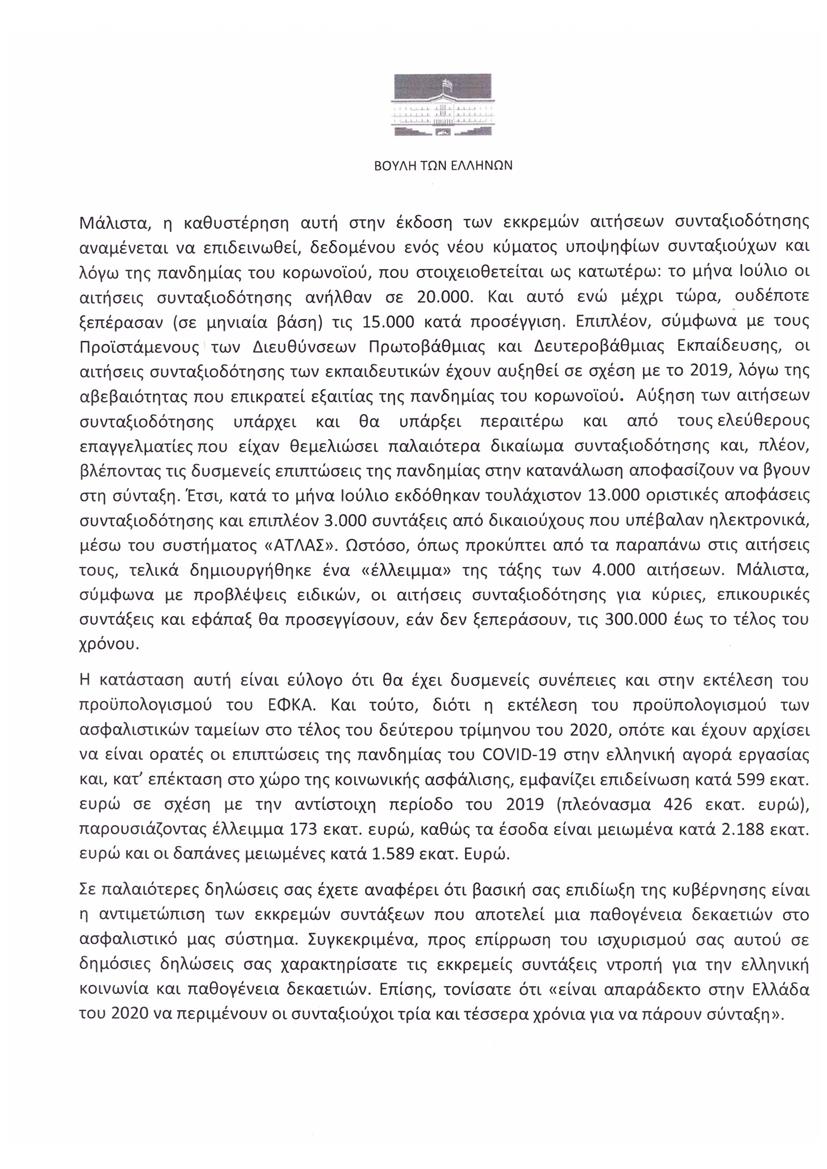 «Επειδή οι εκκρεμείς αιτήσεις συνταξιοδότησης αυξάνονται, σύμφωνα με τα αριθμητικά δεδομένα.